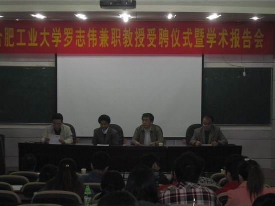 11月1日上午,罗志伟兼职教授授聘仪式暨学术报告会在斛兵报告厅举行,副校长吴玉程等出席。