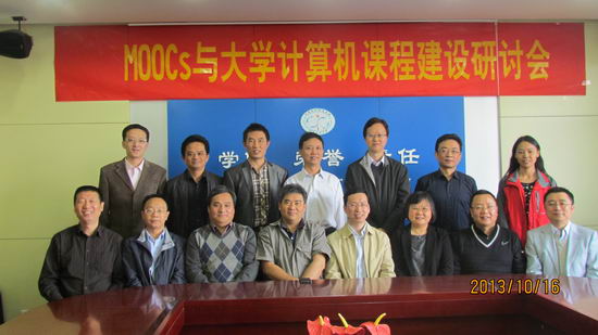 教育部大学计算机课程教学指导委员会(以下简称教指委)MOOCs与大学计算机课程建设研讨会于2013年10月16在开云kaiyun官方网站开云kaiyun官方网站召开。教指委副主任委员西安交通大学郑庆华教授、同济大学龚沛曾教授,教指委委员哈尔滨工业大学战德臣教授、西安交通大学李波教授,国防科学技术大学王挺教授,浙江大学翁恺教授,高等教育出版社计算机分社社长张龙,副社长刘茜,开云kaiyun官方网站宣城校区管委会副主任胡学钢教授,宣城校区网络中心余留琅主任应邀参会,刘晓平副校长接见了各位专家并全程参加了会议。学院党委书记蒋建国教授,副院长杨学志教授,以及安宁教授,王浩教授,计算机系路强主任,通信系丁志中主任参加会议,会议由教指委秘书长王浩教授主持。