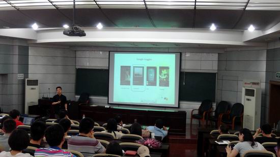2013年6月14日下午4:00-5:00,谷歌公司美国加州总部研究员郑彦涛博士在斛兵楼报告厅做了题为“世界范围内的地标识别”的学术报告。报告会由院党委书记蒋建国教授主持。郑彦涛博士的报告主要介绍了谷歌公司在移动设备上进行图像目标搜索和识别的核心技术--世界范围内的地标识别引擎。报告主要分两个部分 (1)如何建立地标物视觉模型: 介绍了谷歌公司的局部特征提取算法,以及如何从互联网上挖掘地标相关的图像数据。(2)在大数据背景下如何保证搜索的高效性:主要介绍了如何采用Map Reduce技术和KD-Tree算法,保证搜索的实时性。报告内容引起了参会师生的浓厚兴趣。报告会后,参会师生分别就自己感兴趣的问题与郑博士进行了交流互动。