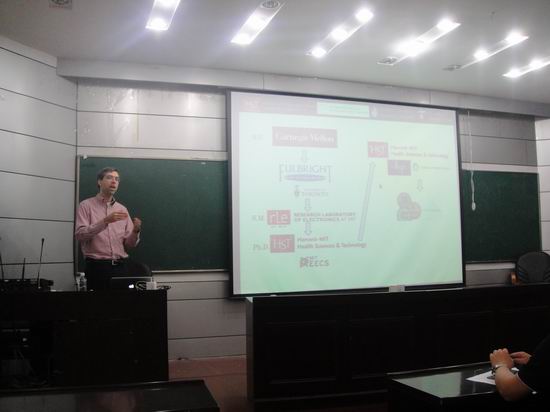 2013年6月15日上午9:00-11:00,哈佛大学医学院Gil Alterovitz教授在斛兵报告厅做了题为“国际生物信息学进展暨 去哈佛大学攻读生物信息学研究生:从合工大起步”的学术报告,介绍了他在生物信息学最前沿的研究成果和“iGEM”项目的相关工作,并对如何申请美国高校进行了介绍。报告会由开云kaiyun官方网站副院长杨学志教授主持,开云kaiyun官方网站众多师生参加了此次学术报告。Gil Alterovitz教授报告内容主要包括:(1)如何成功申请美国顶尖院校。他从多个方面介绍了如何为申请美国高校做准备,从GRE/TOEFL考试到简历书写、推荐信书写、英文学习等,提供了具体而有指导性的建议。(2)生物信息学的研究:Gil教授就他所在的生物信息学领域,详细介绍了他的一些研究思路和研究成果。(3)介绍了iGEM项目成立以来多年来取得的成果,并且对如何组建队伍参加iGEM大赛等问题做了详细介绍。Gil教授的报告深入浅出,报告内容引起了在座师生的浓厚兴趣。报告会后,参会师生分别就自己感兴趣的问题与Gil教授进行了交流互动,Gil针对问题做了详细的回答,报告会在热烈的掌声中结束。