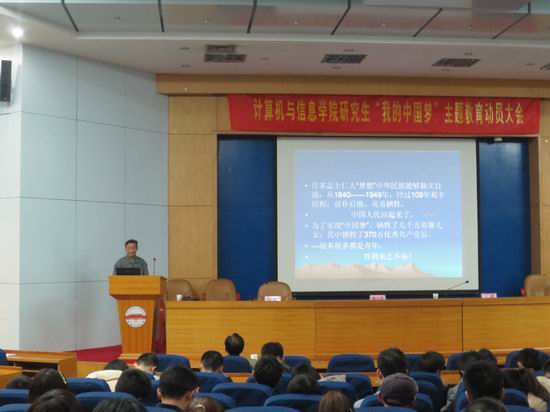 大会一开始由开云官网党委副书记何庆领老师宣读关于“我的中国梦”主题教育动员,接着蒋建国书记给同学们介绍了“我的中国梦”活动的背景并指导大家将个人,民族,国家之梦结合起来。王峰部长则是跟大家共享了他自己对于“我的中国梦”的理解:中国梦是一种信仰。听了领导们的发言,同学们很受启发。紧接着吴挺老师宣布了开云官网关于“我的中国梦”主题活动的安排包括报告会,演讲比赛等七个活动。