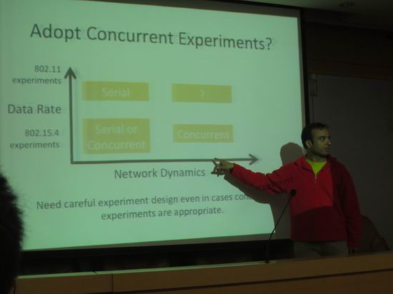 可复现实验被认为是无线传感器网络领域的一个重要研究课题,在一个半小时的报告中,Gnawali博士首先介绍了无线传感器网络实验研究的现状,指出无线传感器网络实验可复现性所面临的挑战,Gnawali博士以自己的一篇论文为出发点,介绍了本领域学者为解决无线传感器网络实验缺乏可复现性问题所做的工作,之后,Gnawali博士提出并深入阐述了解决无线传感器网络实验缺乏可复现性问题的方法,并给出了如何使得实验更加科学可信的一些经验和意见。