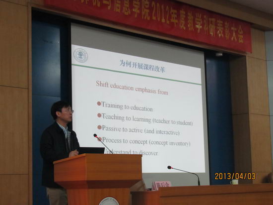 颁奖仪式结束后,举行了“名师论道”的报告会,北京交通大学陈后金教授(国家教学名师)作了“信号处理课程改革与教学团队建设”的精彩报告。大会在欢乐的气氛中结束。