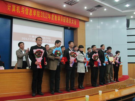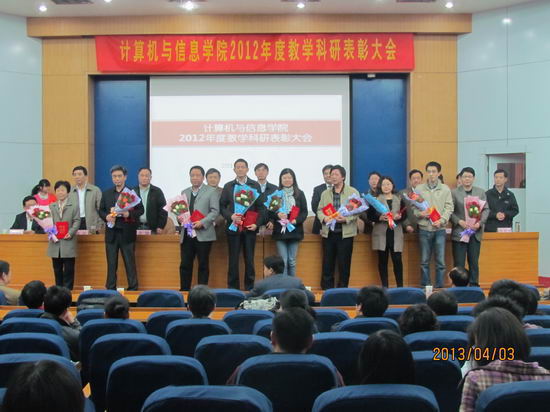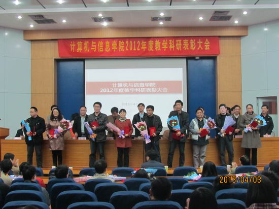 大会对2012年度学生评教中排序前二十名的个人授予了“2012年度学生评教个人优秀奖”;对2012年度科研项目纵向到账经费50万以上、横向到账经费100万以上的个人授予了“2012年度承担科研项目个人优秀奖”。会上,吴玉程副校长发表了讲话,向受到表彰的31位教师表示祝贺,对学院2012年度工作给予了高度的评价,并勉励大家科研再上台阶,早日将开云官网建设成研究型高水平学院。