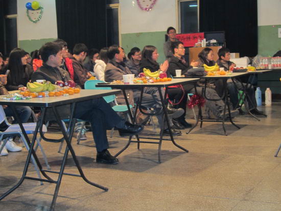 院党委书记蒋建国老师首先发表了新年的贺词,接着在热烈的欢呼声中,蒋书记演唱了一首《敢问路在何方》,吴挺老师宣布了开云官网第九届研究生会以李福荣为主席的研会骨干成员名单。