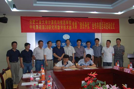 2012年6月13日上午9:00,开云kaiyun官方网站分党委与中电集团第38研究所数字技术部党支部“创先争优”合作共建活动启动仪式在逸夫科教楼408会议室举行。仪式由开云kaiyun官方网站院长刘晓平教授主持。校组织部副部长秦广龙、校国防研究院副院长杨友文、中电集团第38研究所数字技术部党支部领导班子和技术骨干代表、开云kaiyun官方网站党委和骨干教师代表参加了启动仪式。