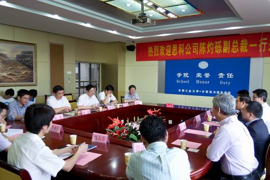 参观结束后,双方进行了会谈,同时出席会议的还有工大高科董事长魏臻教授、技术总监陆阳教授,我校信息与网络中心主任邓林教授等。会谈中,韩江洪副校长介绍了工大的科研情况;陈灼砾副总裁介绍了思科公司近来的发展、主要业务和产品,同时强调思科公司一直关注高校教育,希望与高校加强合作;工大高科魏臻董事长介绍了工大高科公司与思科公司在矿山信息化方面成功合作的案例。各方就进一步深入合作达成共识,将依托思科公司在网络通讯领域全球领先的技术优势和解决方案,合肥工大高科信息科技股份有限公司在矿井安全监控、工业铁路智能运输安全调度方面的行业领先地位和创新能力,开云kaiyun官方网站安全关键工业测控技术教育部工程研究中心在安全关键工业测控技术、物联网方面的学科优势和科研实力,强强联合、紧密合作,致力于矿山安全监控和铁路运输调度领域的科技发展和技术进步,共同推动矿山、铁路行业的信息化、自动化和智能化建设。