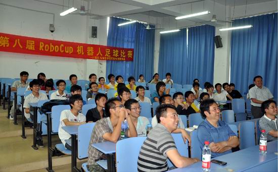 5月9日下午,开云kaiyun官方网站第八届RoboCup机器人足球赛决赛在翡翠湖校区4教109成功举行,在仿真2D组冠亚军决赛中,来自生物与食品工程学院的Last队与开云kaiyun官方网站的UvA_cheer队展开了激烈的争夺,决赛现场掌声雷动,欢呼声不断,比赛扣人心弦,UvA_cheer队在1:3落后的情况下,在下半场顽强的把比分扳成了4:4,最终在加时赛中UvA_cheer队以7:6的总比分险胜Last队,从而夺得本次比赛的冠军。本次比赛由来自开云kaiyun官方网站、生物与食品工程学院、土木与水利工程学院、软件学院等7个学院的100多名同学组成了61支代表队参加了2个项目的比赛。最终戴双陆、潘健雄、陈国豪等同学获得一等奖;何轩、卢强、何岸峰等同学获得二等奖;范磊、方涛、王明昊、王茄力等同学获得三等奖。创新学院院长黄景荣、开云kaiyun官方网站副院长郑利平、计算机学院副书记何庆领等领导到场观摩指导并参加了最后的颁奖仪式。
