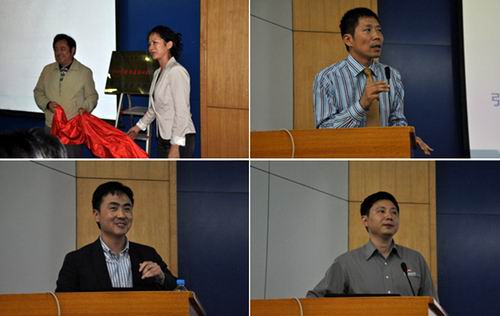学院刘晓平院长致辞,学院一直都很注重大学生实践创新能力的培养,为方便新区的学生进行实践创新教育,把翡翠湖校区100台电脑的第七机房完全开放给学生使用(基本实现学生的自主管理),同时为了方便学生做一些动手方面的创新活动,学院的电子信息基地(新区)去年6月份也正式挂牌使用,在南区学院有固定的近200平方米的创新实验室给大家做创新活动,同时学院还开放了:计算机应用开放实验室(112平方米)、计算机软件开放实验室(112平方米)、电子与通信开放实验室(112平方米)、信息安全开放实验室(112平方米),学院总共拿出近900平方的实验室给学生开放使用,为了更加方便学生使用,学院的实验中心的大部分老师除了周一到周五除了正常上班外,晚上也值班。竞赛是大学生实践创新能力培养的一种重要形式,学院要求教师在给学生做竞赛培训时,不能仅仅进行精英教育,要更加注重普适性教育,使更多的学生受益。因此我们学院每年竞赛经费的支持大概是学校资助经费的5倍以上。并代表联合实践创新基地落实单位感谢《电子产品世界》给予我们的支持和帮助,同时承诺学院对大学生实践创新能力的培养将会一如既往的给予大力的物力、财力和人力的支持。