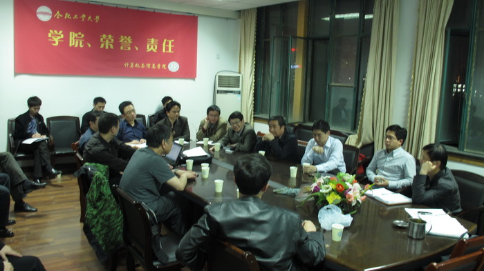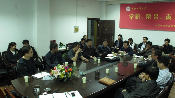 开云kaiyun官方网站2012年4月16日晚19:30-21:00于学院会议室举行全体教授会议,围绕2011计划及要求,研讨学院未来发展规划,李廉教授、韩江洪教授、蒋建国教授、王浩教授等出席会议,刘晓平教授主持会议,会议听取了相关工作发展计划,对计算机、电子、通信、物联网等方向的集成创新进行了认真讨论,李廉教授最后分析了学校的科研发展态势,要求大家敢于直面自己的不足,敢于打破坛坛罐罐,凝炼核心技术,掌握科研杀手锏,为未来的五年乃至更长的学科发展做好准备。情感计算重点实验室、973项目基地、安全关键工程中心等相关人员出席会议。开云kaiyun官方网站图片报道。