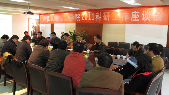 2011年12月17日下午,开云kaiyun官方网站科研工作2011座谈会于文达大厦举行,学院领导班子成员、系主任、科研工作者代表共20余人出席会议,会议由刘晓平院长主持,科研院长杨学志做主题发言,韩江洪副校长发表重要讲话。