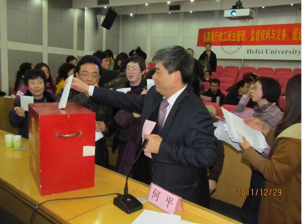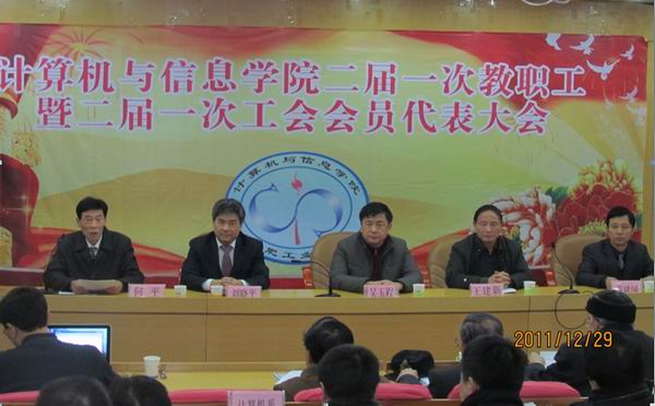 2011年12月29日下午,开云kaiyun官方网站第二届一次教职工暨工会会员代表大会在校学术会议中心隆重召开。副校长吴玉程、校工会主席王建新出席会议;由学院各单位推选的两代会正式代表、列席代表和特邀代表共70余人齐聚一堂,共商学院发展大计。大会由副院长何平主持。