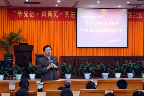 为增强班级凝聚力,加强学风班风建设,客观评价班级的综合情况、引导学风建设的健康发展,促进班级工作科学化、规范化和制度化。2011年11月5日下午五点,开云kaiyun官方网站“争先进,树新风,共进步”2010级优良班风学风班级评比在图书馆报告厅如期举行。学工部部长王峰老师、校团委书记陈文恩老师、翡翠湖校区管委会副主任史志胜老师、学工部于长伟老师、开云kaiyun官方网站党委副书记、副院长何庆领老师以及部分年级辅导员担任评委。