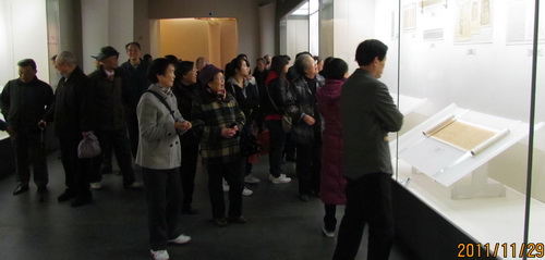2011年11月29日,由学院党政工联合组织了一年一度的离退休人员年终慰问暨参观活动――参观安徽省博物院,77名离退休人员欢聚一堂。学院领导高度重视此次活动,分派专人负责,关注天气情况、搀扶老人,大家各司其责,相互协作,目的就是为了使老人们高兴。他们有说有笑,畅谈学校近年来的变化以及对学院各项工作的关注,同时也为博物院中精美的展品和文物所震撼,老人家们都表达了对我们国家拥有悠久历史文化的自豪,也对历代文人骚客的艺术造诣、能工巧匠的精湛技艺进行了高度的赞扬。
