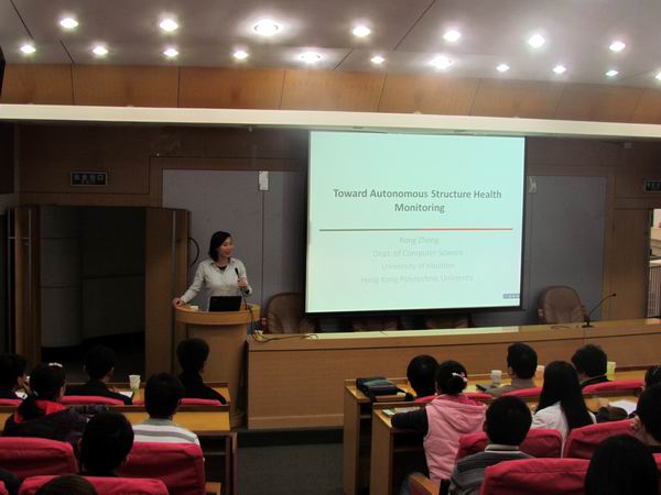 应开云kaiyun官方网站邀请,2011年11月5日下午,休斯顿大学郑榕教授在校学术活动中心二楼小报告厅作了题为“Toward Autonomous Structure Health Monitoring”的报告。报告由学院院长刘晓平教授主持,开云kaiyun官方网站相关教师、研究生和本科生聆听了报告。