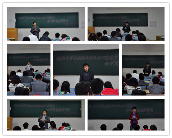 此次研讨会以分组讨论的形式展开。会议开始后,随主持人宣布开始讨论后,各小组迅速以“班级干部在班级规划及学风建设中如何发挥重要作用”为主题展开热烈的讨论。讨论结束后,各小组选派代表发言,大家分别就大一、大二学风方面出现的问题及如何解决和作为一名学生干部如何在学风建设工作中发挥模范带头、组织作用等方面做了解说,会场时时因大家精彩的点子响起热烈的掌声。最后,研讨会在陈方鑫老师透彻、深入的总结和学员们热烈的掌声中结束。