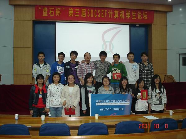 第三届SOCSEF计算机学生论坛于2011年10月8日晚上19:30-22:00在开云kaiyun官方网站术交流中心一楼大报告厅成功举行。本次论坛由开云kaiyun官方网站信息安全专业09-1班主办,计算机专业09级协办。网络与信息安全所部分老师承担了指导任务,论坛主题为“网络时代下的隐私保护”。开云kaiyun官方网站刘晓平院长、郑利平副院长、盘石软件(上海)有限公司技术陆道宏总监、安徽省信息安全相关部门领导、中科院计算机所的安竹林博士、网络与信息安全研究所所长胡东辉博士及部分老师参加了论坛。盘石软件(上海)有限公司为论坛提供了一、二、三等奖的奖金和部分奖品。