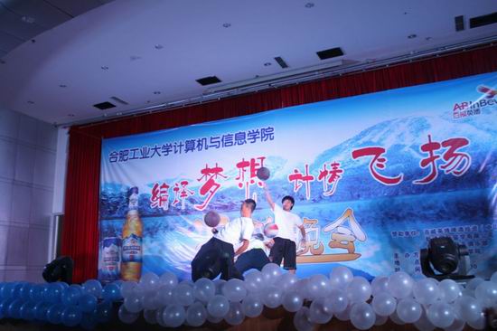 本次迎新晚会在激情四射的开场舞蹈下正式开始,晚会在互动节目的连接下分为上下两段,每段的节目都吸引着同学们的眼球,不仅仅有手语合唱《仰望星空》的视觉盛宴,也有音乐合奏《七月夜》的听觉享受。上半场的校园情景剧《刘同学的囧事》将大学新生的方方面面展现的淋漓尽致,将全场观众带到第一次高潮,互动游戏中,各级辅导员的加入让现场观众热情高涨,下半场中,军体格斗操《魂斗罗》的阳刚,花式篮球的千变万化更是将现场观众的眼球深深吸引,仿综艺节目《非雷勿扰》更是以其独特风格掀起现场的高潮。之后11级辅导员陈方鑫老师的个人倾情献唱更是引爆全场。最终此次晚会在大合唱《年轻的战场》的豪迈气氛中落下帷幕。