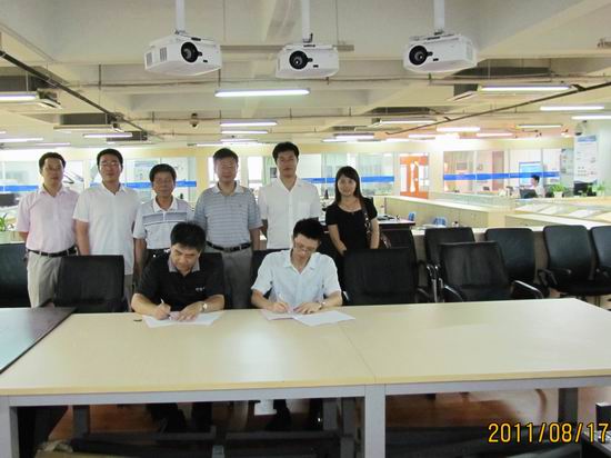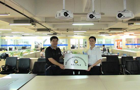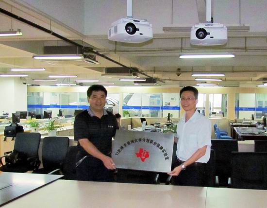 刘晓平院长、欧阳一鸣主任、张建军所长、马学森老师和卫星老师等出席教学实训基地的签字仪式。出席仪式的无锡无线龙科技有限公司代表有总经理萧毅、副总经理周柏宏和华东区域经理沈纬等。签字仪式前,张建军所长代表开云kaiyun官方网站欢迎无锡无线龙的到访,并向客人介绍计算机学院近年的发展。刘院长代表开云kaiyun官方网站与无锡无线龙的萧总经理一同签署了共建教学实训基地协议,并为“TI无线龙亚洲大学计划联合挂牌实验室”和“无线龙校外实训基地”揭牌。签字仪式后,刘晓平院长视察了无锡无线龙的无线传感网教学装备,并表示学院重视对计算机专业学生实践能力的培养,希望打造校内教学与公司实训两位一体的实践培养模式。