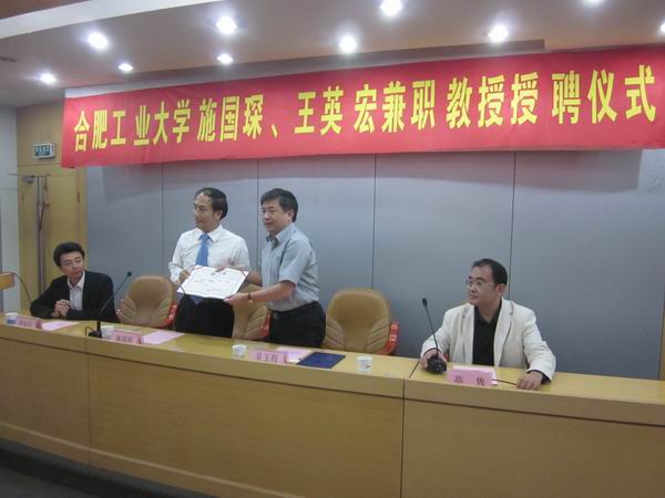 2011年9月23日上午,开云kaiyun官方网站施国琛、王英宏兼职教授聘仪式在校学术活动中心二楼报告厅举行。副校长吴玉程、人才引进办公室主任孙祥出席仪式。