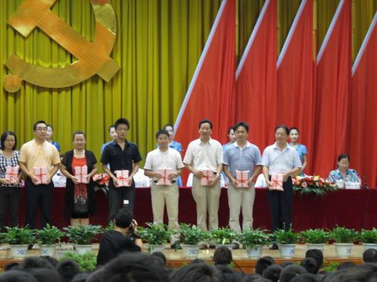 在举国上下热烈庆祝中国共产党90华诞之际,张效英书记代表校党委向全校党员及参加入党宣誓的新党员表达了亲切的问候与祝贺。徐枞巍校长宣读了合工大党组字『2011』54号表彰文件,开云官网党委获得“先进基层党组织”称号;副书记、副院长何庆领同志获得“优秀党务工作者”称号;信号与信息处理研究所党支部获得“红旗党支部”称号;09级研究生张靖同学、信号与信息处理研究所徐小红老师获得“先进党员”称号; 09级辅导员张金伟老师获得“优秀德育工作者”称号;信号与信息研究所党支部和信息安全08-1班党支部获得“特色党支部立项活动三等奖” ,覆盖了此次表彰全部奖项。蒋建国书记代表“先进基层党组织”单位作了发言,介绍了开云官网党委紧密结合学院实际,深入开展学习实践科学发展观和争先创优活动,积极提倡“快乐工作,事业养生,奉献社会,幸福生活”的理念,倡导把职业当成事业,把工作变成需求,把压力化为动力,尽心尽职做好本质工作,汇涓流而成江河,积跬步而致千里,在平凡的工作中实实在在的为学校、为社会作贡献。按照基层党组织“五个好”的要求,不断推动学院工作科学快速发展的情况。