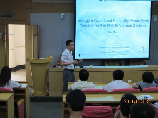 6月3日下午,美国圣地亚哥州立大学计算机科学系终身副教授,谢涛博士为开云官网师生做了题目为“Energy-Efficient and Reliability-Aware Data Management in Mobile Storage Systems”的学术报告。