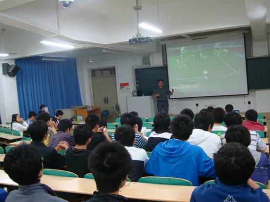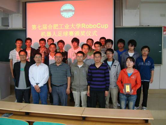 本次比赛从3月份初开始,历经宣传、自由组队报名、培训、设计球队等多个阶段,历经2个月,来自计算机学院、软件学院、应用电子与物理学院、电气学院等多个学院的70多名同学组成了26支代表队参加了比赛。唐敏龙等同学获得二等奖,刘锦文等同学获得了三等奖。