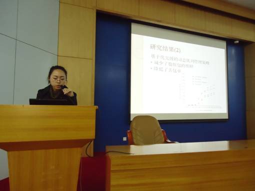 报告会由通信工程系主任丁志中教授主持。黎洁博士从物联网的发展引题,结合自己的研究设计,讲述了DT-MSN节点移动性带来的能耗问题和数据容迟性引起的问题。黎洁博士通过自己的研究,在DT-MSN采用接收方发起传输机制并基于优先级队列排列策略的基础上,提出了具有信息轨道、精英选取、路由与传输的有效结合等优点的“跨层优化设计方法” ,并由此建立了“蚁态模型”。黎洁博士还就智能交通、智能电网、智能家居等应用背景,对“DTN Ad hoc网络通信协议”的研究前景做出了展望;并对现场提问做出了耐心的解答。最后,报告会在热烈的掌声中结束。