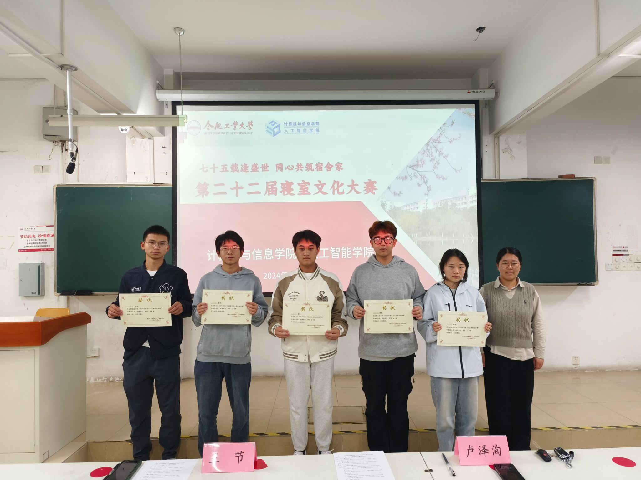 经过激烈比拼,12号南楼504、7号北楼210寝室获得一等奖,12号南楼315、12号南楼411、7号北楼211三个寝室获得二等奖,12号南楼331、12号南楼313、7号北楼212获得三等奖,12号南楼321、12号南楼314获得优秀奖。卢泽洵结合往年优秀案例,分享了一间主题鲜明的寝室是如何打造的,指出了所有参加本次比赛的共性问题,对个性问题提出了解决的意见。