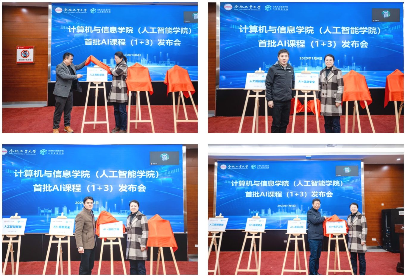 发布会上,开云官网教学副院长夏娜首先介绍了首批四门AI课程的建设情况;随后,发布会播放了“人工智能基础”通识课的宣传短片,并进行了四门AI课程的揭牌仪式;最后,教务处处长张莉、副处长张毅分别发表了指导讲话;洪日昌院长感谢了教务处对开云官网教学改革工作的支持,同时号召大家在AI赋能高等教育的赛道上开拓创新,不断提升AI课程的内涵和水平,助力我校人工智能教育高质量发展!