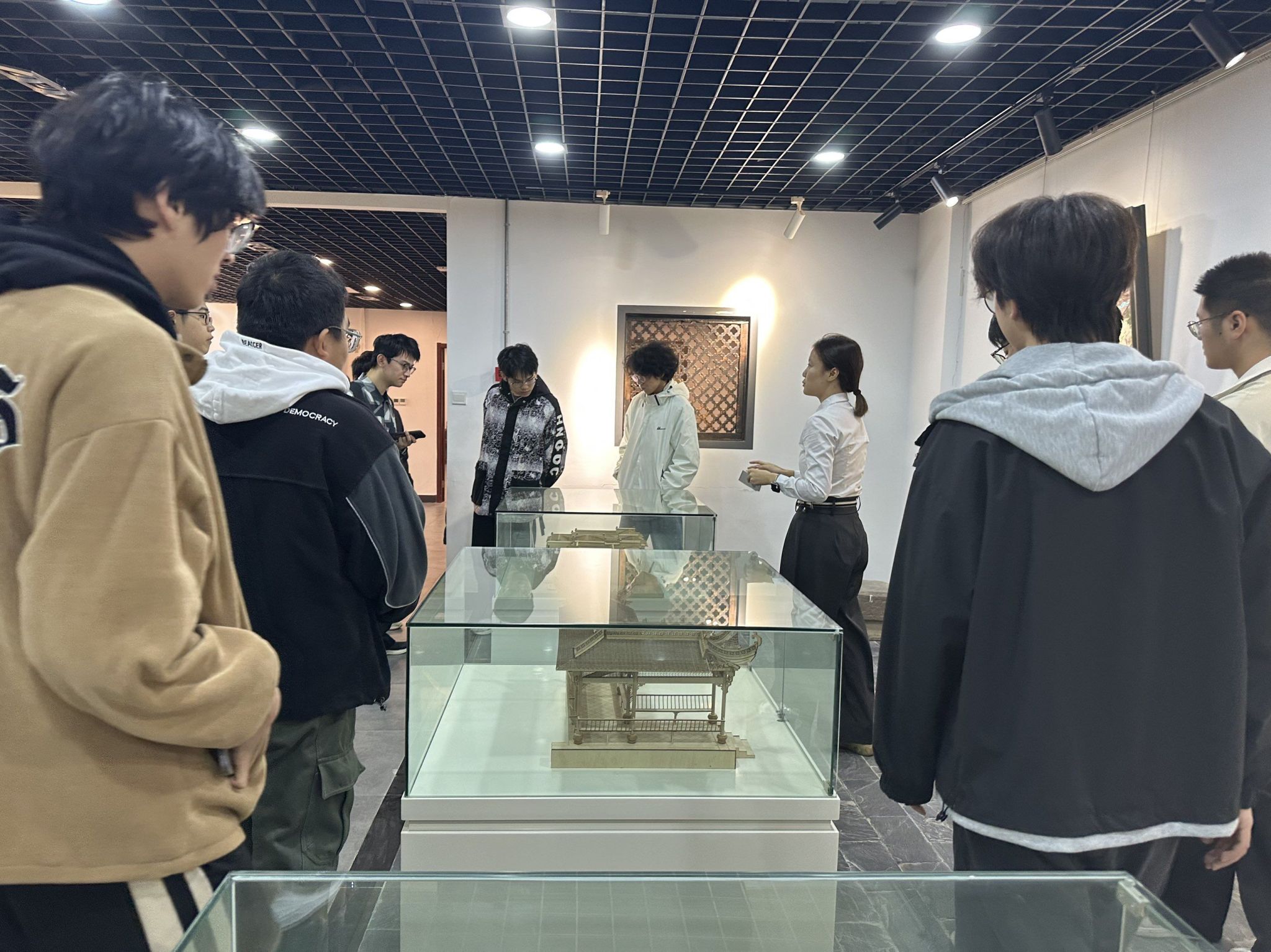 参观过程中,同学们认真聆听讲解,不时交流讨论,驻足细观展品。从徽州古村落的空间布局到精美的木雕石刻,从建筑技艺到家训家风,大家切身感受到徽派建筑浓厚的家国情怀与工匠精神。徽派建筑不仅是中国传统文化的重要组成部分,更蕴含着历代徽商尚义诚信、奋发进取的精神底色,让同学们深刻体会到文化传承的力量,也进一步坚定了肩负时代使命、勇担复兴重任的信心和决心。