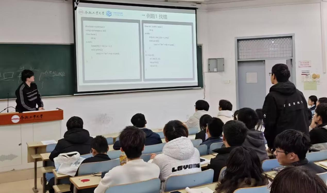 朋辈辅导环节,单傲祥结合课堂重点与自身学习经验,以“理论梳理+典型例题”的形式拆解《程序设计基础》中“继承”的核心知识点,针对继承的概念、基类与派生类的关系等高频难点,通过例题解析、思路引导帮助新生理解。集中答疑环节,新生们围绕作业中继承相关的实操问题、题目解法积极提问,高年级朋辈导师团成员逐一耐心解答,现场互动氛围热烈。既展现了学长扎实的专业功底与负责的分享态度,也体现出新生主动求知、积极探索的学习风貌。
