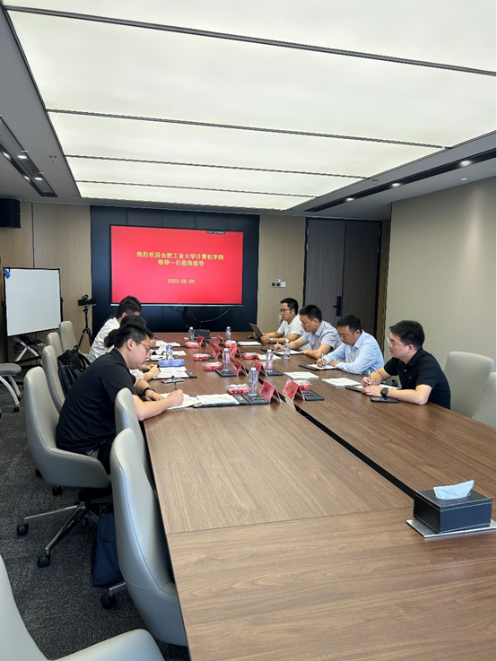 The director of our college's Department of Computer Science and Technology, Wu Gongqing, deputy director Zheng Shuli, backbone teacher Yao Yuanzhi, and undergraduate counselor Lu Zexun went to Hangzhou Anheng Information Technology Co., Ltd. to carry out a visit and job expansion exchange activity. Mr. Tang Lu, the person in charge of Hangzhou Anheng Information Technology Co., Ltd. in Hefei area, and Mr. Ma Dongcheng, the sales director, warmly received the visiting teachers from our college.