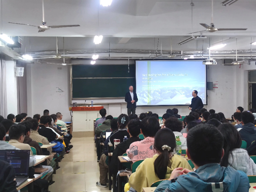 On November 11, Robert Koglek, a faculty member from the Management Center Innsbruck (MCI), Austria, visited Hefei University of Technology and delivered a special lecture for undergraduate students in the "Smart Elderly Care" course at the Feicui Lake campus.