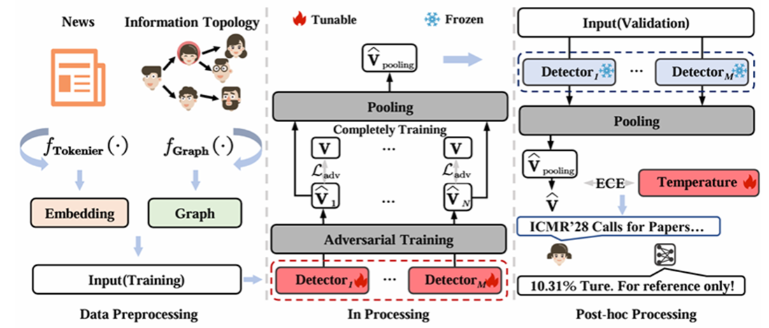 Although false information detection models excel in terms of accuracy, they often suffer from issues of "overconfidence" or "lack of confidence" in their prediction confidence levels, significantly compromising their reliability in practical applications. When false information spreads rampantly on social media, it becomes crucial to construct a credible detection system that balances accuracy and reliability. Recently, Sun Rui (first author), an undergraduate student from the Class of 2021 at Xuancheng Campus of our school, under the guidance of Associate Professor Hu Wenbo (corresponding author), proposed an innovative framework called RATE (Robust Adversarial Training and Temperature-scaled Ensemble Framework). The paper based on this framework was successfully selected for the International Conference on Multimedia Retrieval (ICMR) 2025, a premier event in the field of multimedia retrieval. This achievement stems from the theoretical foundation and scientific research literacy that Sun Rui accumulated through his participation in the "Hubing Machine Learning Reading Group" during his sophomore year. Through systematic training in classic literature reading and project practice, Sun Rui gradually developed his research capabilities in multimodal false information detection. His work breaks through the bottleneck of confidence calibration in existing models, providing a new credible AI paradigm for the governance of false information on social media. This fully demonstrates the educational effectiveness of our school's "integration of science and education" training model.