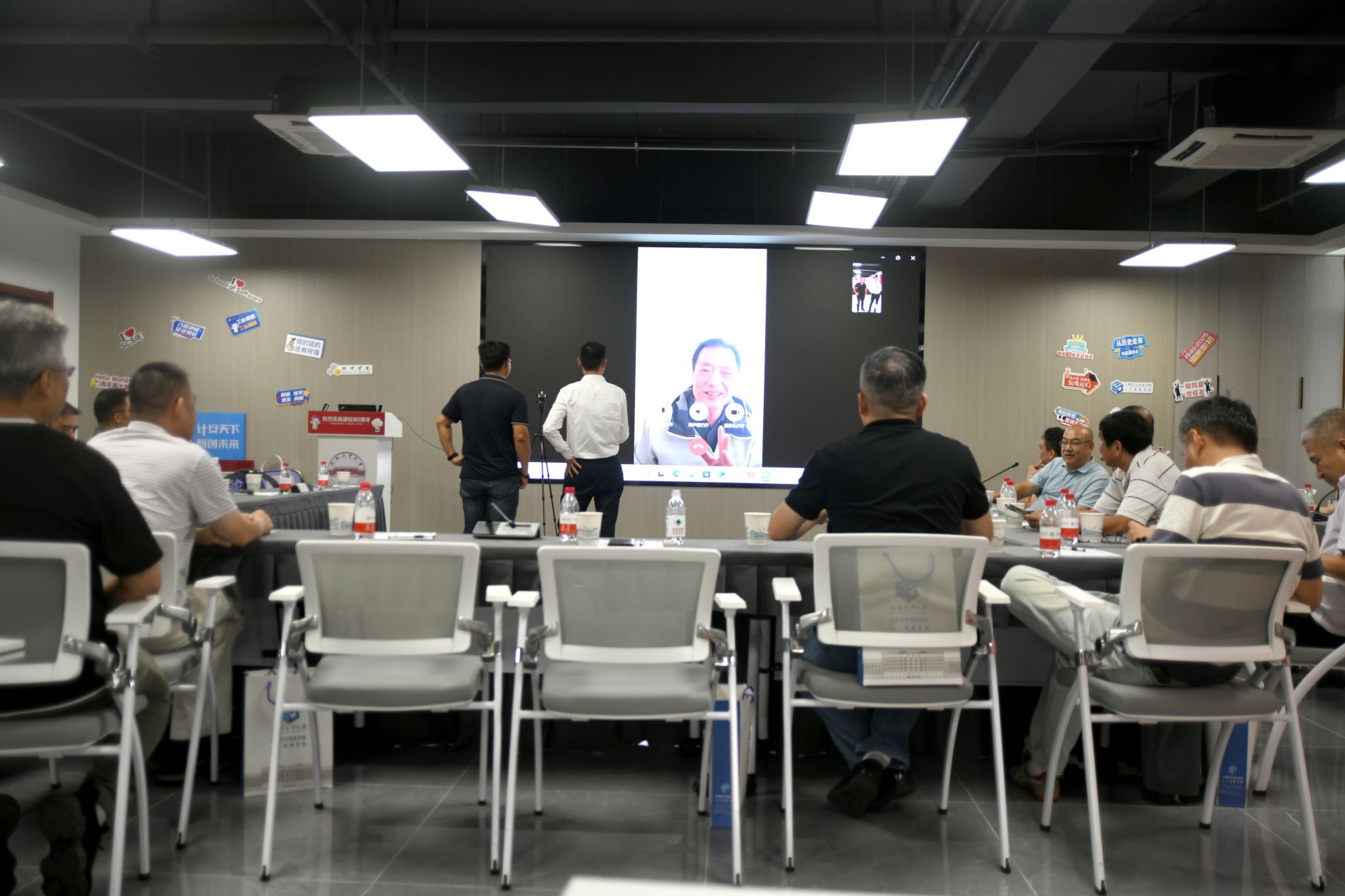 在科教楼B501报告厅,一场温馨而庄重的师生座谈会如期举行。学院领导、教师代表与校友们欢聚一堂,宣传片与泛黄老照片交替播放,引来阵阵掌声与感慨。